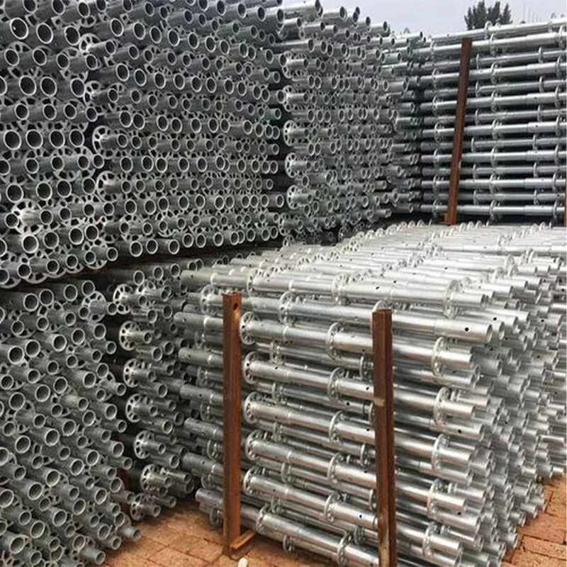The snap-on steel pipe stand comprises a horizontal bar, a vertical bar, a diagonal bar, an adjustable base, and an adjustable stand. It can be categorized into two types based on its application: scaffolding and template support. The snap-on scaffolding is a modern form-work support structure commonly used in domestic bridges and subways. It is a modular scaffolding system that offers great versatility and can be easily assembled or suspended from the ground.
